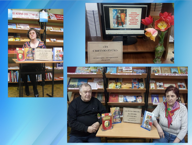 Александр Невский – это имя известно всем в нашей стране. Князь жил 800 лет назад, но его жизнь продолжает вдохновлять поколения много веков спустя. 19 апреля в библиотеке на Судоремонтников для членов клуба «Литературные встречи» прошло литературно – историческое обозрение «За Святую Русь!», посвященное святому князю. Библиотекарь рассказала о его ратных подвигах, о мудрой заботе по сохранению христианской веры. Завершилось мероприятие обзором литературы тематического просмотра (А. Анисимов «Древняя Русь. Рюриковичи», С. Афонькин «Православные святые», «Рассказы о русских святых»).