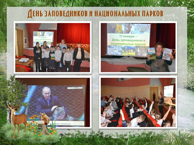 В День заповедников и национальных парков сотрудники Центральной городской библиотеки им. А.С. Пушкина города Туапсе провели литературно-экологическое досье «Край родной навек любимый, в заповедниках хранимый». В ходе мероприятия юные читатели, узнали о том, для чего создаются заповедники, какие заповедники и национальные парки есть на территории России, узнали об особо охраняемых территориях Краснодарского края, вспомнили и обсудили правила поведения в природе.