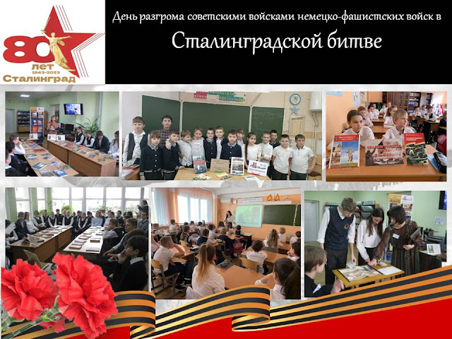 В дни празднования 80-летнего юбилея великого события – Победы в Сталинградской битве, – мы еще раз преклоняем колени перед памятью тех, кто защитил мир от страшного врага на поле брани. Высокий патриотизм, бескорыстие, жертвенность, вера в добро и справедливость – вот, что двигало этими людьми. И потому они победили. О героизме и мужестве советских людей, о командном составе, о подвигах рядовых солдат, женщин и детей – шла речь на мероприятиях, проведенных библиотеками города Туапсе: исторический экскурс «Горячий снег нашей Победы», патриотическая квест-игра «Сталинградская битва», литературный маршрут «Их имена в сердцах потомков и в строках наших книг», историко-патриотическая конференция «Сталинградский дневник. Простые герои», квест-игра «Здесь Победа свой путь начинала…»