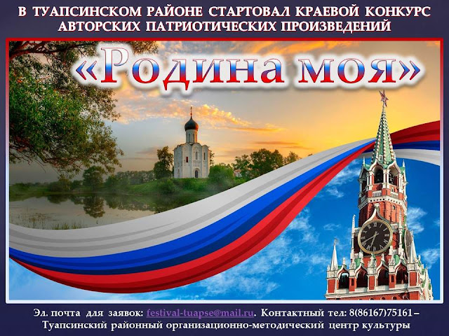 В Туапсинском районе сегодня стартует краевой конкурс авторских патриотических произведений «Родина моя», посвященный 79-й годовщине празднования Дня Победы советского народа в Великой Отечественной войне.