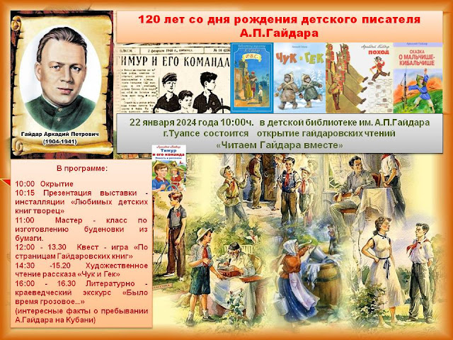 этот день в детской библиотеке им. А.П. Гайдара будет дан старт гайдаровским чтениям «Читаем Гайдара