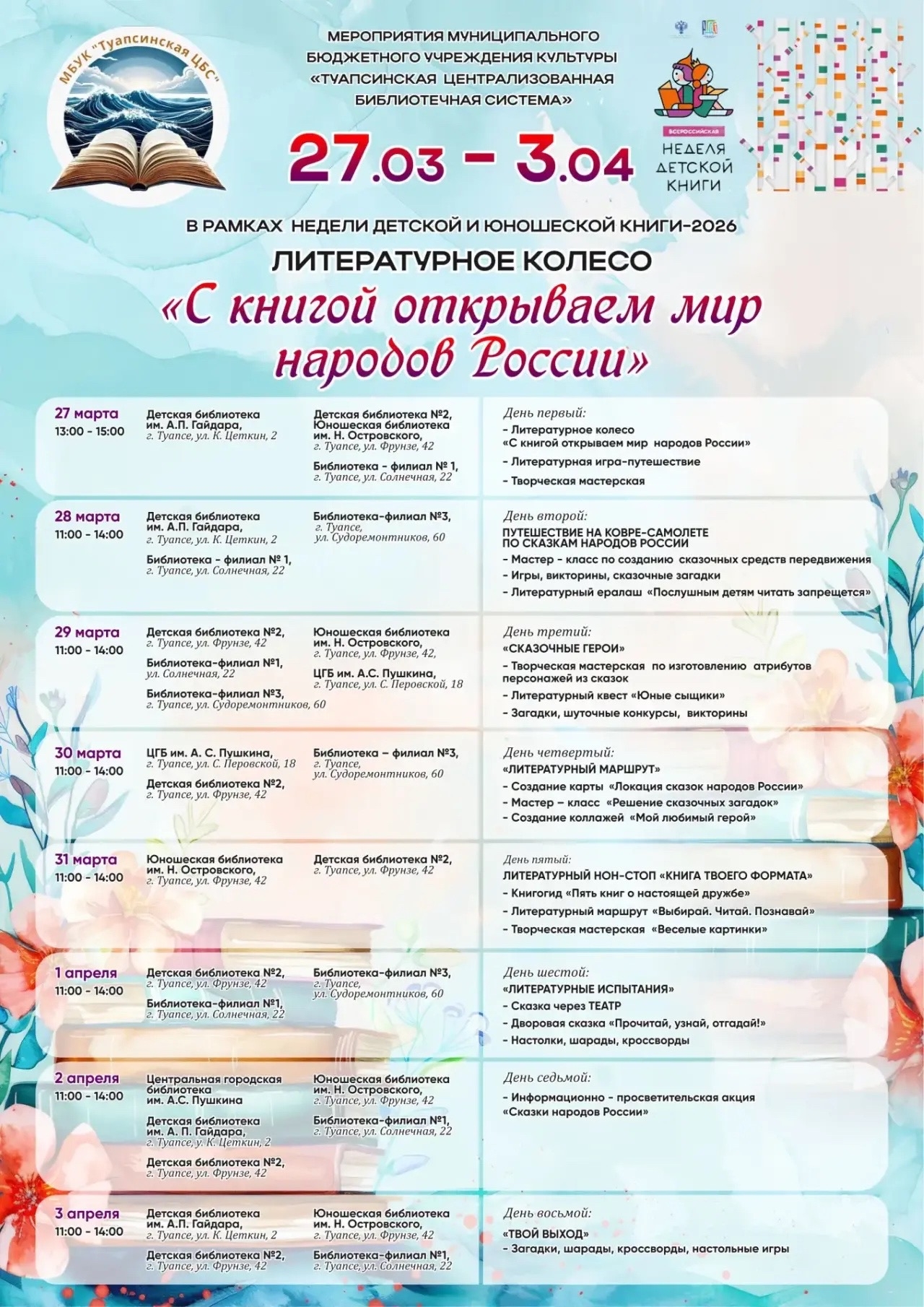 Дорогие читатели!Ознакомьтесь с нашими мероприятиями в дни весенних каникул и недели “Детской и юношеской книги“ Навигация по записям Награждение! Наша гордость!